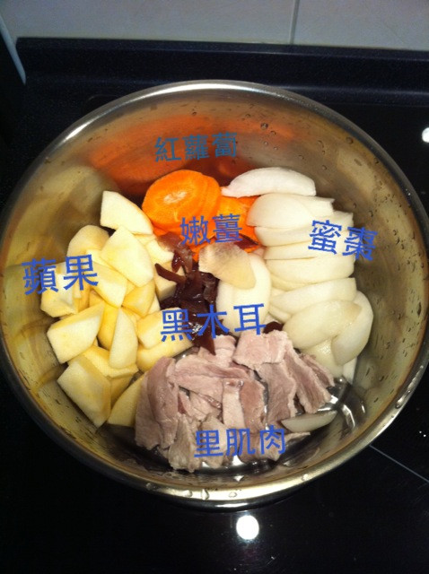 開始用開胃蘋果蜜棗瘦肉高湯準備煲煮寶寶粥囉