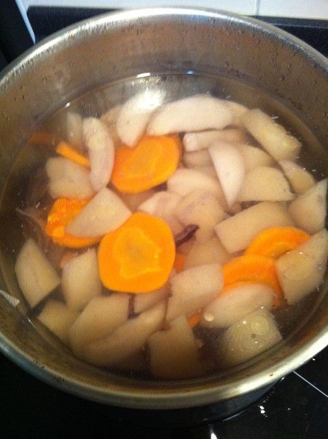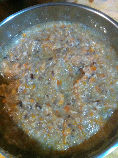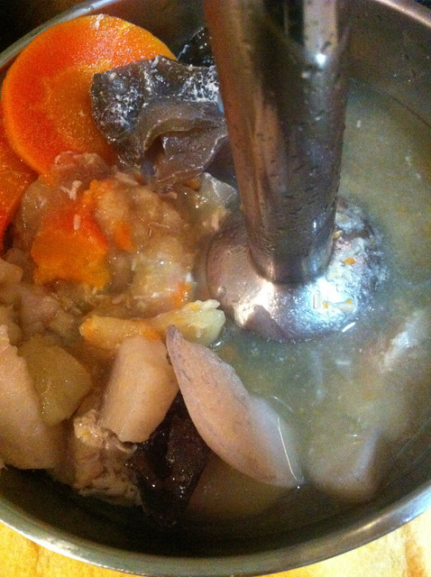 這次的烹煮是把高湯與食材分開再將食材另外事先已經打碎
