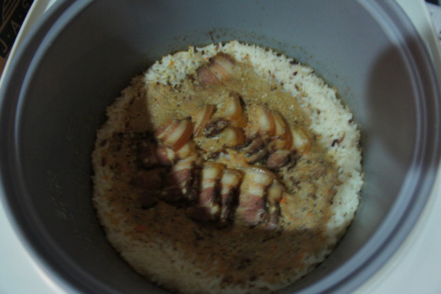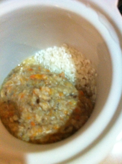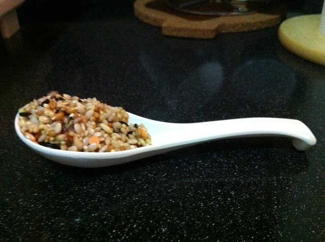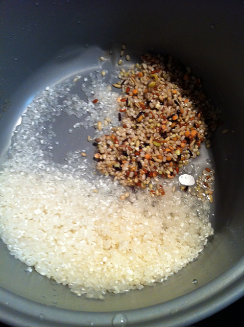 所以我白米(與打碎的食材) 1 : 1 多穀米