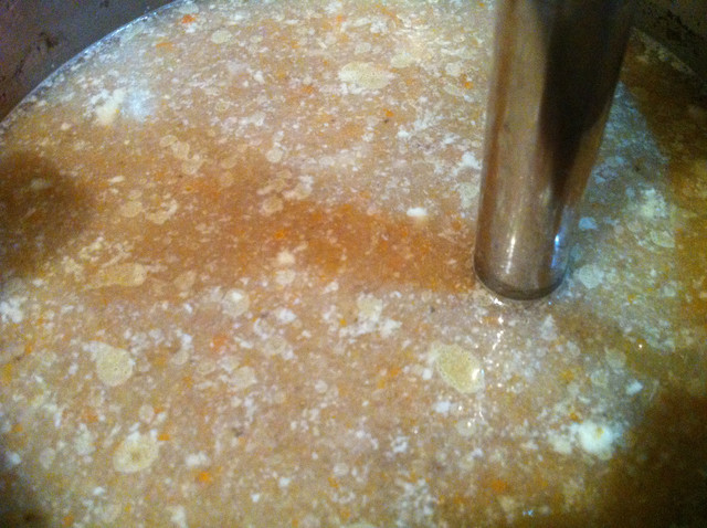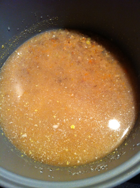 用大量水果熬的高湯,熬過後果肉或多或少會讓湯汁帶有點灰