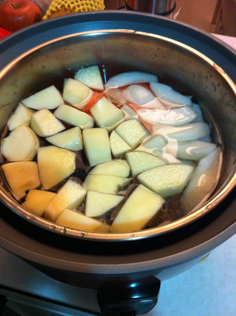 開始用開胃蘋果蜜棗瘦肉高湯準備煲煮寶寶粥囉